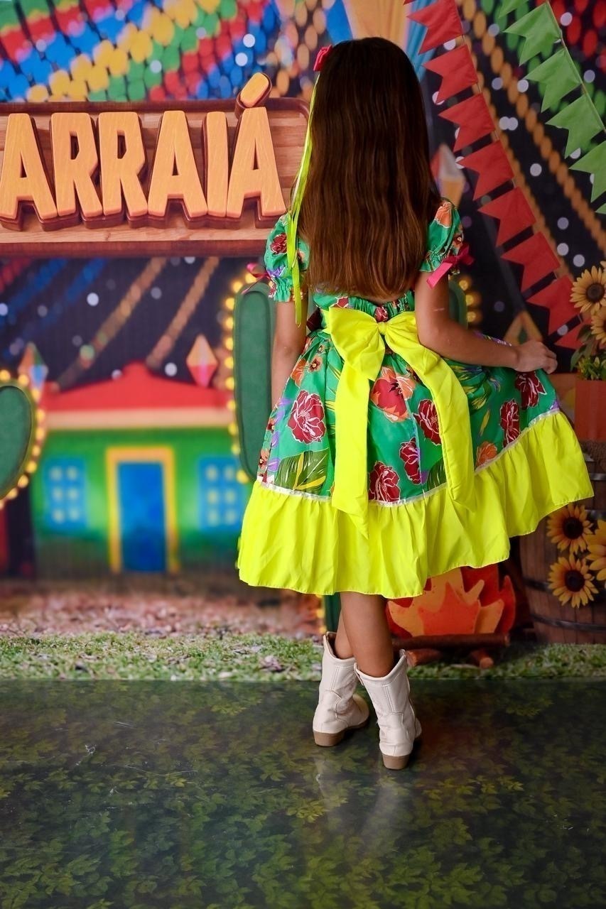 Vestido Junino infantil Vestido caipira estampado verde festa junina vestido São João infantil